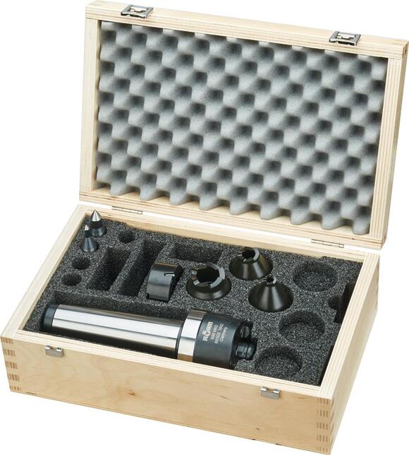 Sortiment čelních upínačov CoAE Provedenie: Malý sortiment CoA, upínací okruh O 12-50 mm, rozsah sústruženia 13-100 mm, hydraulický. Použitie: Pre racionálne sústruženie obrobkov po celej ich dĺžke bez opätovného upínania s vysokou presnosťou. Vyvinuté na základe stavebnicového princípu, preto je možná univerzálna výmena unášacích kotúčov a strediacich hrotov. Hydraulické alebo mechanické vyrovnávanie tlaku vykazuje rovnomernú upínaciu silu aj na nerovných čelných stranách obrobku. Pomocou pružného strediaceho hrotu sa pozdĺžny doraz obrobku vykonáva na čelnej strane. Obsah dodávky: Sortiment konštantných unášacích telies na čelnej strane s 1 základným telom, 4 unášacími doskami, Ø upínacieho okruhu 12, 20, 32 a 50 mm a 2 strediacimi hrotmi s Ø A = 6 + 12 mm. Výrobca: Röhm GmbH, Heinrich-Röhm-Straße 50, 89567 Sontheim, DE, +497325160, info@roehm.com