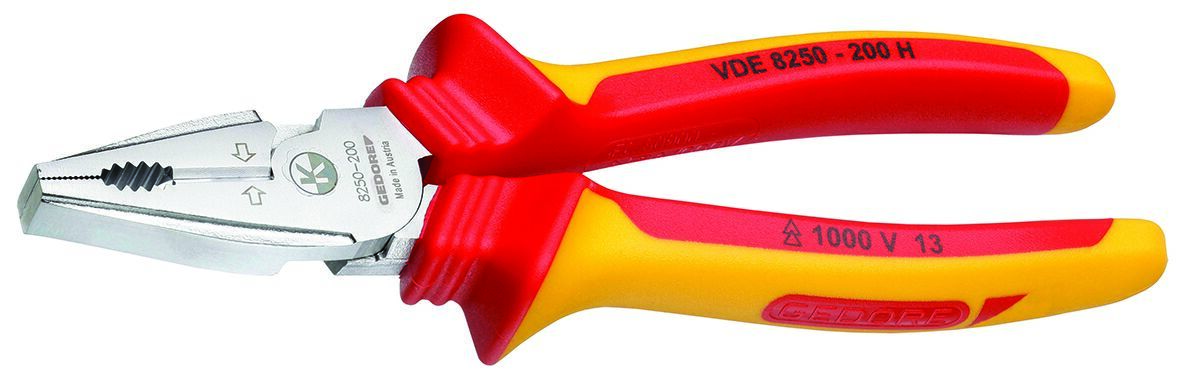 Otestované jednotlivo, Na najťažší nepretržitý stres, Veľká páka uľahčujúca rezanie, Pre okrúhle a ploché materiály, Veľmi dlhé čepele, Indukčne kalené presné čepele, tvrdosť čepelí 62 - 64 HRC, Pre všetky vodiče, aj pre klavír, 1,6 mm, Povrchy úchopu so zúbkami, Konektor, Vysoká účinnosť rezania pri garantovanej 35% menšej námahe, nohy VDE izolované do 1000 V, v súlade s normou EN 60900/IEC 60900, dvojzložkové ochranné puzdrá rukovätí, GEDORE špeciálna oceľ tepelne spracovaná, kovaná, kalená v oleji a tepelne upravená, chrómaná