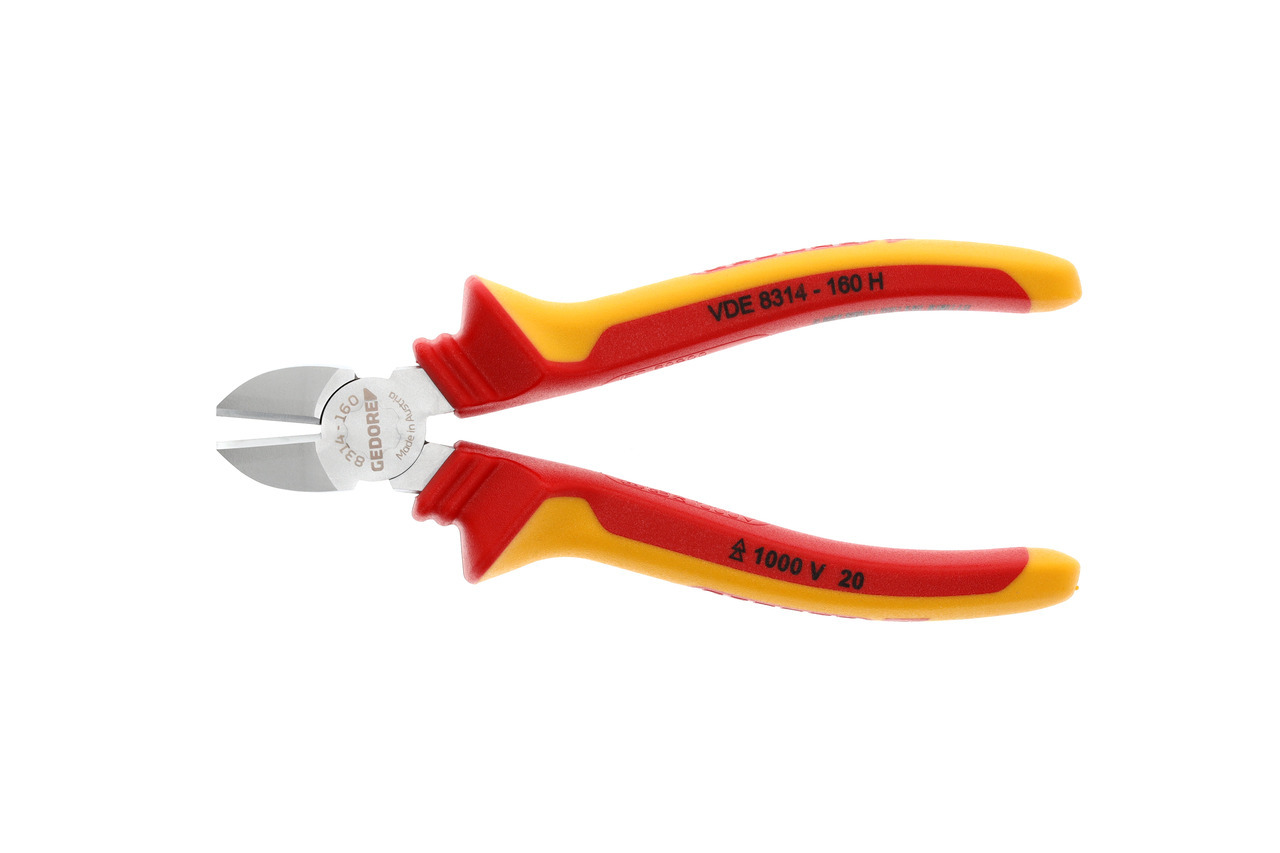 Úzka hlava, ideálna do tesných priestorov, Presné rezné hrany kalené indukčne, tvrdosť reznej hrany 63 - 65 HRC, Špeciálna oceľ GEDORE na zlepšenie, kovaná matrične, kalená v oleji a popúšťaná, Ramena s izolačným obalom podľa EN 60900/IEC 60900