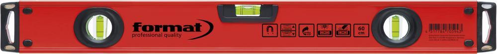 Vodováha z hliníkového profilu Provedenie: Z hliníka, práškové povrstvenie v červenej farbe. S extrémne stabilnou geometriou profilu pre trvalú a neklesajúcu presnosť. Hrúbka steny 2,2 mm zabraňuje deformáciám profilu vodováhy. Tri nezničiteľné sudovité libely umožňujú elektronické seřizovanie a sú ukotvené v profile s maximálnou presnosťou. Vďaka špeciálnej konštrukcii je horizontálna libela navyše chránená pred mechanickými vplyvmi. Táto nová konštrukcia tiež zabezpečuje, že vodováha má pri každom meraní priebežnú meraciu plochu a je tak možné vykonávať jednoznačné značenie na každom mieste. Vďaka špeciálnej zrkadlovej optike je možné z libely jednoducho a presne odčítať aj na ťažko prístupných miestach. S koncovými krytkami tlmiacimi nárazy. Táto vodováha má navyše protisklzovú funkciu, ktorá uľahčuje značenie a meranie na stenách. Okrem toho má táto vodováha ešte ergonomický otvor na uchopenie a silné magnety. Horná a dolná meracia plocha sú frézované. Presnosť merania v bežnej polohe a v polohe nad hlavou predstavuje 0,5 mm/m. Použitie: K horizontálnemu a vertikálnemu obvyklému meraniu a k meraniu v prechodovej polohe. Výrobca: Einkaufsbüro Deutscher Eisenhändler GmbH, EDE Platz 1, 42389 Wuppertal, DE, +4920260960, webkontakt@ede.de