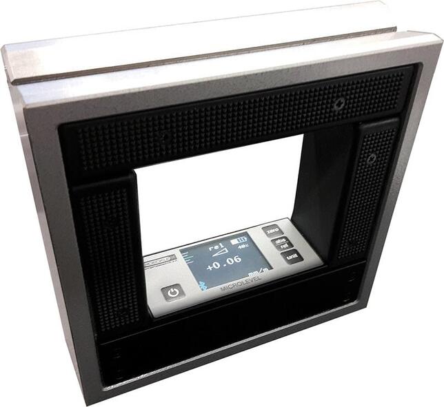Digitálna liatinová rámová vodováha Vyhotovenie: Veľký osvetlený farebný displej. Rýchly odpočet a jednoduchá obsluha. 4 presne brúsené meracie plochy. Bezdrôtová komunikácia. Diaľkové zobrazovanie na smartfónoch. Prevádzková doba akumulátora 10 hodín. Dodáva sa v čalúnenom plastovom kufríku. Funkcie: Absolútne / relatívne meranie, 13 rôznych jednotiek, horizontálne a vertikálne meranie, funkcia Hold. Voliteľné, k dispozícii samostatne: grafický vyhodnocovací softvér, výstup protokolu merania, export dát do MS Excel, diaľkové ovládanie cez smartfón alebo PC cez Bluetooth. Použitie: Na presné vyrovnanie vodorovných a zvislých plôch a hriadeľov. Výrobca: Roeckle Neigungsmesstechnik e.K., Lichtäckerstr.11, 73770 Denkendorf, DE, +49711311332, info@roeckle.com