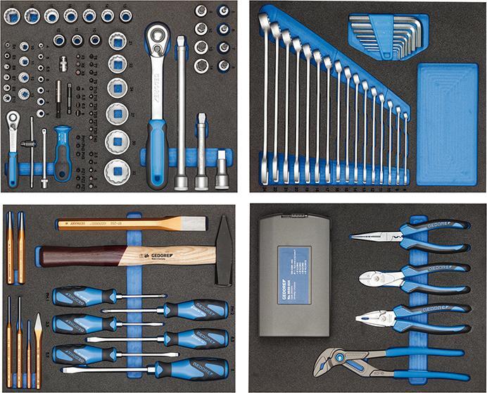 Dielenský vozík workster highline, so sadou 147 kusov Rozsah dodávky: 1 nástrojový modul nástrčné kľúče 81 kusov obsahuje: 1 prepínacia ráčna 1/4" 11 nástrčných kľúčov dvanásťhranných 1/4" 4; 5; 5,5; 6; 7; 8; 9; 10; 11; 12, 13 mm 6 hlavíc šesťhranných nástrčných kľúčov s vonkajším TORX® T 4; 5; 6; 7; 8; 10 4 adaptéry bitov (bity) 1/4“ploché 4; 5,5; 6,5; 8 mm 5 adaptérov-bitov (bity) 1/4" inbus 2,5; 3; 4; 5; 6 mm 3 adaptéry-bitov (bity) 1/4" vnútorný mnohohran M5; 6; 8 11 adaptérov bitov (bity) 1/4“s vnútorným TORX® T 6; 7; 8; 9; 10; 15; 20; 25; 27; 30; 40 3 adaptéry bitov (bity) 1/4“, krížové, PH 1; 2; 3 3 adaptéry bitov (bity) 1/4“, krížové, PZ 1; 2; 3 1 priečna rukoväť so smýkadlom 1/4" 1 kardanový nástavec 1/4" 97 mm 1 násad nástroja 1/4" 1 adaptér na bity 1/4" 1 multirukoväť 1/4" 1 držiak bitu 1/4" 1 prepínacia ráčna 1/2" 16 hlavíc pre dvanásťhranné nástrčné kľúče 1/2" 10; 11; 12; 13; 14; 15; 16; 17; 18; 19; 21; 22; 24; 27; 30; 32 mm 8 adaptérov-bitov 1/2" inbus 5; 6; 7; 8; 9; 10; 12; 14 mm 1 nástavec 1/2" 2 nástavce kardanu 1/2" 125; 250 mm 1 nástrojový modul krúžkové vidlicové kľúče 24 kusov obsahuje: 16 krúžkových vidlicových kľúčov 8; 9; 10; 11; 12; 13; 14; 15; 16; 17; 18; 19; 20; 21; 22; 24 mm 1 sada uhlových skrutkovačov inbus 2; 2,5; 3; 4; 5; 6; 8; 10 mm 1 nástrojový modul ručné náradie 14 kusov obsahuje: 4 ploché skrutkovače s úderovou hlavou 3,5; 5,5; 6,5; 8 2 krížové skrutkovače s úderovou hlavou PH 1; 2 1 zámočnícke kladivo 500 g 1 dôlčík 120 x 12 x 5 mm 3 vytlkače závlačiek 1,5; 3; 4 mm 1 plochý sekáč osmihran 250 x 24 mm 1 krížový sekáč osmihran 125 x 10 x 5 mm 1 priebuch osmihran 120 x 12 x 5 mm 1 nástrojový modul kliešte 28 kusov obsahuje: 1 univerzálne kliešte 10" 1 silové kombinované kliešte 200 mm 1 viacúčelové ploché guľaté kliešte 200 mm 1 silové štípacie kliešte s bočným ostrím 180 mm 1 box na spirálové vrtáky 24 kusov Výrobca: GEDORE Werkzeugfabrik GmbH & Co. KG, Remscheider Straße 149, 42899 Remscheid, DE, +492191596900, gedore.empfang@gedore.com