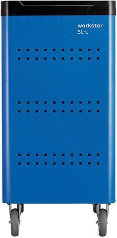 Dielenský vozík workster smartline so 7 zásuvkami. Vyhotovenie: Stabilná konštrukcia z oceľového plechu, zásuvky s úplným výsuvom, vodidlá na guľôčkových ložiskách a jednoručné bezpečnostné zablokovanie, všetky zásuvky sú individuálne rozdeliteľné. Na oboch stranách so štvorcovým perforovaním (10 x 38 mm) pre upevnenie rôzneho príslušenstva. Centrálne uzamykateľný pomocou valčekového zámku. Pracovná doska z polypropylénu s priehradkami pre drobné diely, čelné zploštenie a ochranná hrana koliesok. 2 vnútorné kolieska s ľahkým chodom, ako aj 2 otočné kolieska, brzda koliesok na jednej strane (úplné zastavenie). Povrch odolný proti poškriabaniu, práškové lakovanie. So 7 zásuvkami vysúvateľnými na jednu stranu (5 x 80; 2 x 160 mm výška). Výrobca: GEDORE Werkzeugfabrik GmbH & Co. KG, Remscheider Straße 149, 42899 Remscheid, DE, +492191596900, gedore.empfang@gedore.com