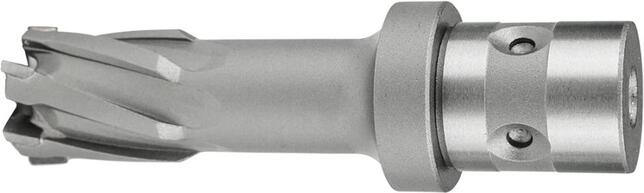 Jadrový vrták Vyhotovenie: Stopka QuickIN, vnútorný otvor 6,35 mm. Použitie: Na stojanových vrtačkách s magnetickým stojanom a upínačom QuickIN. Jadrový vrták obrába iba tenký krúžok materiálu. Odvŕtané jadro sa vyhadzuje pružinovou silou pomocou vodítka a vyhadzovacieho kolíka. Špony sú odvádzané nahor, nebezpečenstvo prasknutia sa znižuje na minimum. Taktiež vrtané otvory s veľkým priemerom si vyžadujú relatívne málo energie. Jadrový vrták obrába v porovnaní so spirálovým vrtákom iba malú časť celkovej plochy. Týmto sa dosiahne veľká úspora času a vynaložených síl. Hĺbka rezu 35 mm. Ultra jadrový vrták z tvrdokovu s jemným upínačom Quick IN. Výrobca: C. & E. Fein Service GmbH, Hans-Fein-Str.81, 73529 Schwäbisch Gmünd-Bargau, DE, +497173183467, info@fein.de