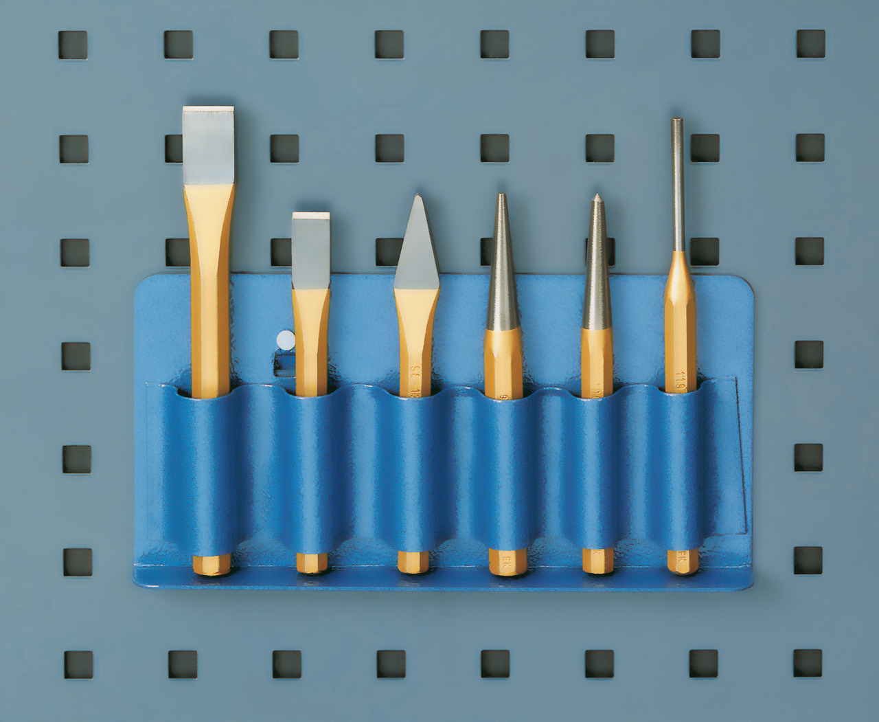 Pre 6 dlát, Pasujú do plechov perforovaných s otvormi 10 x 38 mm, Rozmery: šír. 195 x výš. 95 x hĺb. 22 mm, Vyrobené z oceľového plechu, GEDORE modrý
