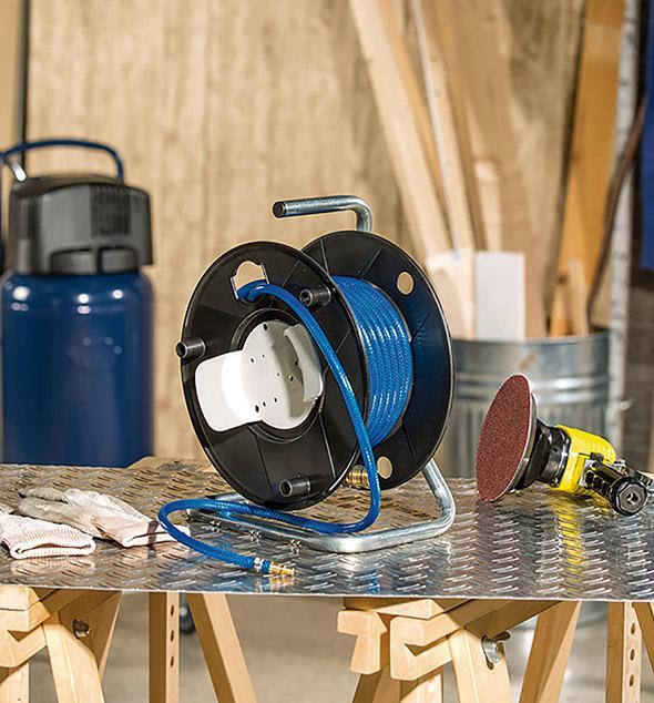 Plastový bubon na pneumatické hadice Provedenie: Mimoriadne robustný model z vysoko pevného špeciálneho plastu s tkanou hadicou. Podstavec z pozinkovanej oceľovej rúry. Dodáva sa s kovovými jednoručnými rýchlospojkami, spojovacou hadicou a nástenným držiakom. Výrobca: Hugo Brennenstuhl GmbH & Co KG, Seestr. 1-3, 72074 Tübingen, DE, +49707188010, info@brennenstuhl.de