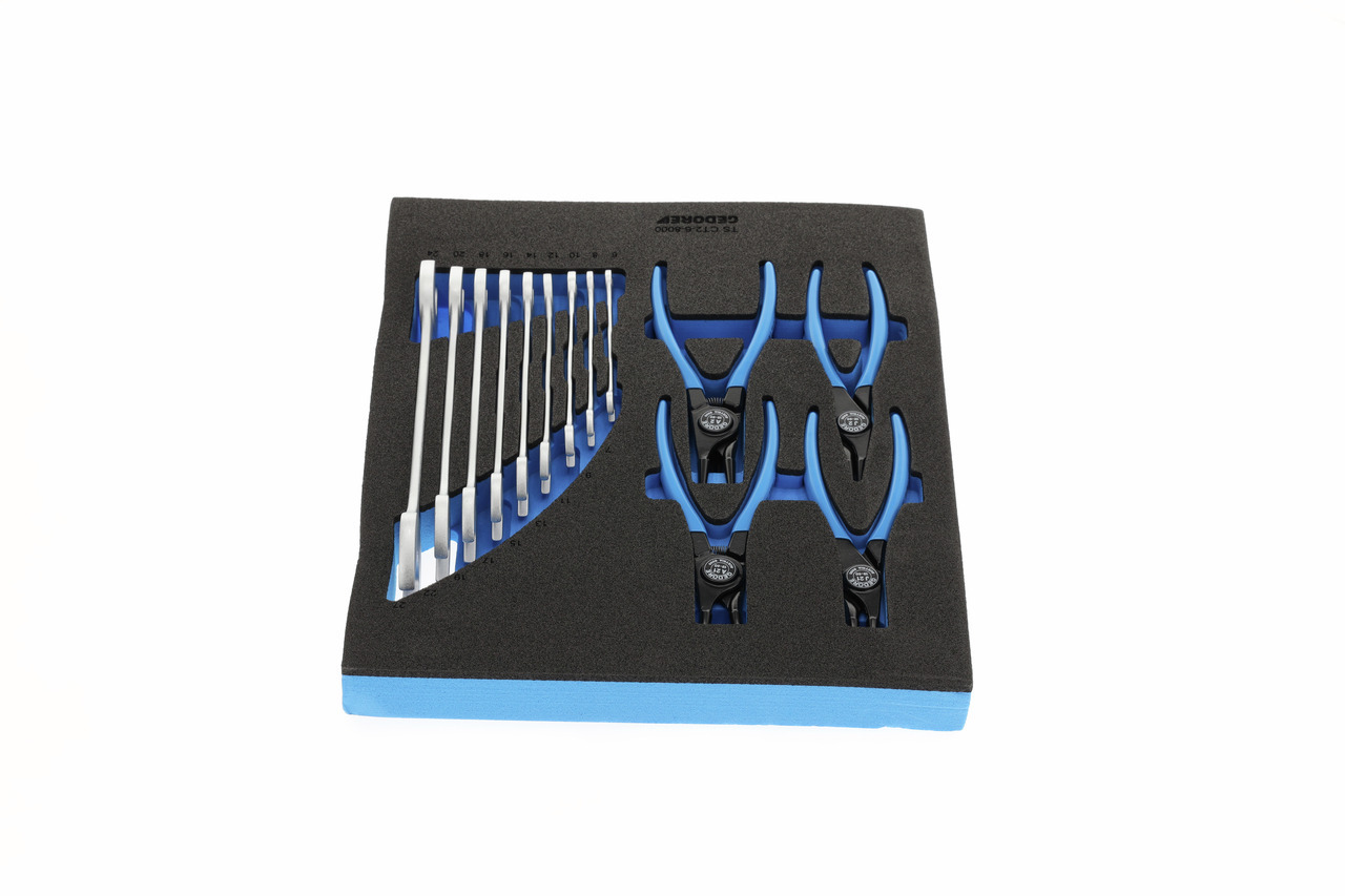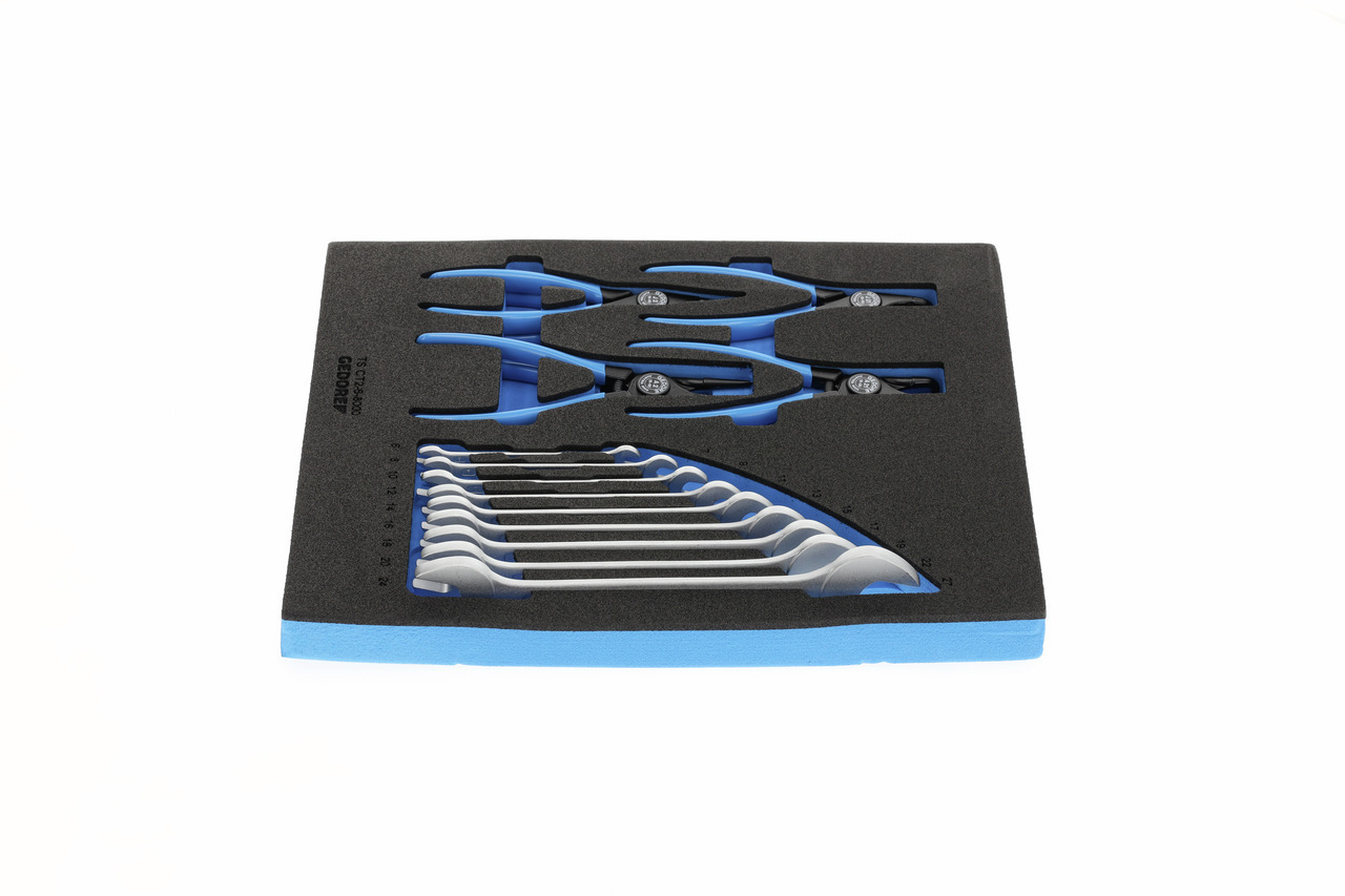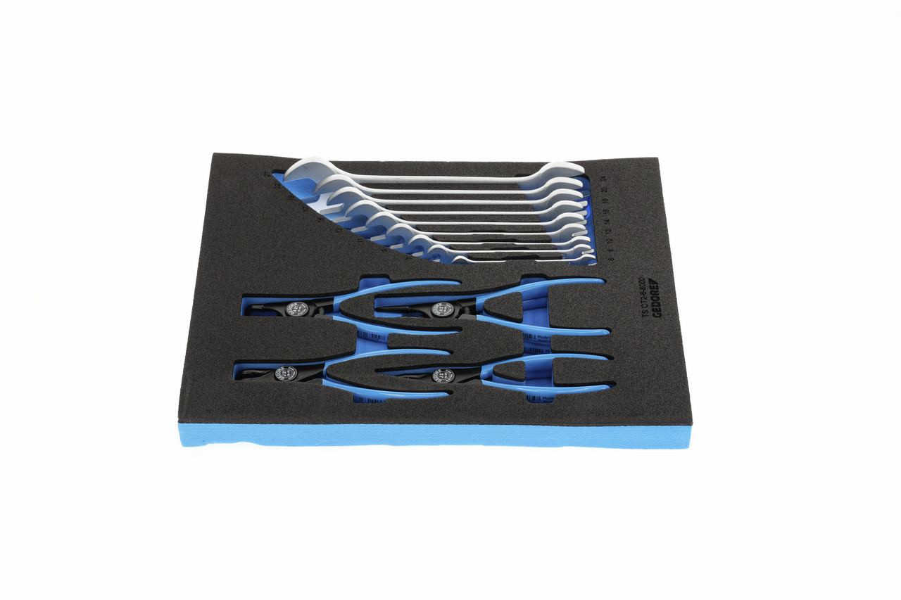 Rozmery: 316,5 x 390 x 35 mm, Jednoduchá optická kontrola úplnosti vďaka dvojfarebným penovým vložkám, Obzvlášť vhodné na prácu v citlivých oblastiach, kde je potrebné dbať na to, aby po sebe nezostávali žiadne nástroje, Základná vrstva modrá, vrchná vrstva čierna. Farba modrá označuje chýbajúce nástroje, Nástroj leží protišmykovo v hniezde a je chránený pred poškodením., Vstavané úchyty uľahčujú demontáž nástroja, Jasne viditeľné kontúry nástroja uľahčujú jeho opätovné vloženie do správneho hniezda, Odolnosť voči olejom a tukom, Ľahko sa čistí vodou, mydlom a kefou na ruky/nechty