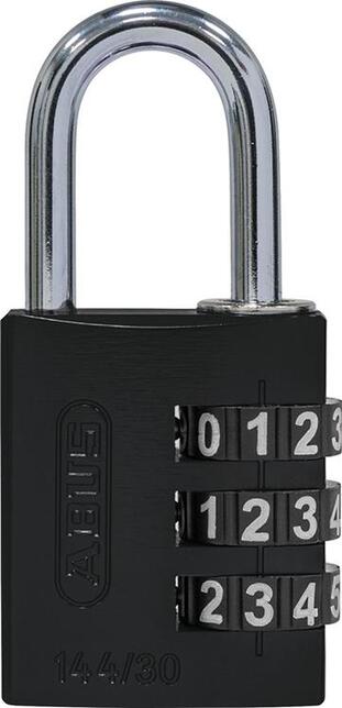 Hliníkový kódový visací zámok 144 Provedenie: Masívne telo zámku potiahnuté ľahkým hliníkom s tvrdeným oceľovým tretím. Mimoriadne veľké plastové valčeky s otěruvzdorným vstrekovaným popisom pre trvalú čitateľnosť a antikoróznu ochranu. Individuálne nastaviteľná číselná kombinácia. Výrobca: ABUS August Bremicker Söhne KG, Altenhofer Weg 25, 58300 Wetter, DE, +4923356340, info@abus.de