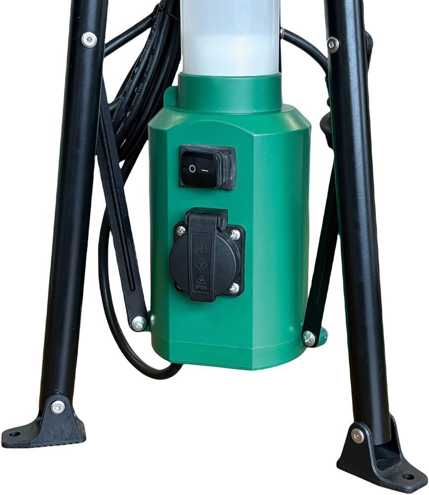 LED stavebné svietidlo Provedenie: Robustný plastový kryt a difúzorový valec s výklopnými podstavcami a integrovaným navijakom kábla. Veľkoplošné, rovnomerné a neoslňujúce osvetlenie, vyžarovací uhol 360°. So zásuvkou s ochranným kontaktom v patici. Dodanie s ramenným popruhom na prenášanie. Výrobca: Einkaufsbüro Deutscher Eisenhändler GmbH, EDE Platz 1, 42389 Wuppertal, DE, +4920260960, webkontakt@ede.de
