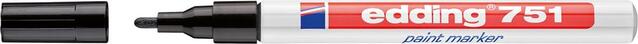 Lakový popisovač edding 751/751 Provedení: Kulatý hrot s hliníkovým pláštěm. Rychle schnoucí, vysoce permanentní, krycí pigmentový inkoust na způsob laku, bez zápachu a odolný vůči světlu. Inkoust silně kryje, a poskytuje tak i při nevhodných světelných podmínkách velice dobře viditelné výsledky. Odolný vůči teplotě až 400 °C, bílá a žlutá barva jsou dokonce viditelné až do 1000 °C. Použití: Pro popis tmavých nebo průhledných povrchů, jako je kov, sklo a plast. Výrobca: edding Aktiengesellschaft, An der Feldmark 9B, 31515 Wunstorf, DE, +4950311500, info@edding.com