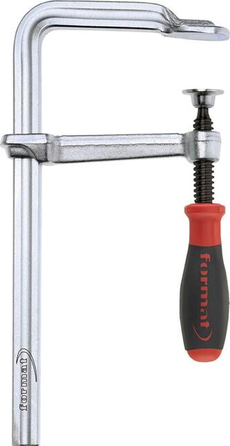 Celoocelová skrutkovacia svorka s dvousložkovou plastovou rukoväťou Provedenie: S dvousložkovou plastovou rukoväťou s veľkou ergonomickou mäkkou zónou pre lepší úchop, s ochranou proti odkutáleniu a s razením na hlave. Klzné lišty, pevný tretí a prítlačná doska z jedného kusu staticky optimalizovanej profilovej ocele, extrudovanej za studena. Klzné tretí z kovaných, galvanicky pozinkovaných, zušľachtených oceľových materiálov, vreteno so snadným chodom z valcovaného kaleného brunovaného trapézového závitu a pohyblivou prítlačnou doskou. Použitie: Pružné upínanie pre jemné pridržanie obrobkov. Pre vysoké upínacie sily pri nízkej hmotnosti nástroja. Upínacia sila až 5 kN. Výrobca: Einkaufsbüro Deutscher Eisenhändler GmbH, EDE Platz 1, 42389 Wuppertal, DE, +4920260960, webkontakt@ede.de