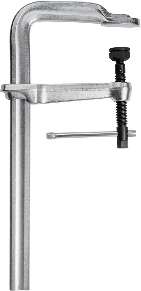 Šroubovacia svorka na oceľové konštrukcie Vyhotovenie: Klznica, pevný trhák a pritlačná doska v jednom kuse zo staticky optimalizovanej, za studena extrudovanej profilovej ocele, klzný trhák z kovaných a galvanicky pozinkovaných, zušľachtených oceľových materiálov, vreteno s jednoduchým chodom s valcovaným, kaleným a fosfátovaným trapézovým závitom. Vysoko výkonná pritlačná doska s odolnosťou proti vysokým teplotám, s veľkou guľovou hlavou, výklopná do 35°, vymeniteľná, s tvrdenou a olejom impregnovanou sintrovanou oceľovou vložkou. S priechodnou páčkovou kľukou a šesťhranom na upnutie pomocou matice, nástrčného kľúča, momentového kľúča alebo ráčny. Použitie: Predovšetkým pre upínacie sily do 22 kN. Týmto je možné používať na práce v kompletnom odvetví opracovania kovov a vo výrobe oceľových konštrukcií. Výrobca: BESSEY Tool GmbH & Co. KG, Mühlwiesenstr. 40, 74321 Bietigheim-Bissingen, DE, +4971424010, tool-info@bessey.de