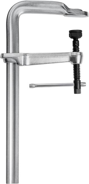 Šróbovacia svorka na oceľové konštrukcie Vyhotovenie: Klznica, pevný trhák a pritlačná doska v jednom kuse zo staticky optimalizovanej, za studena extrudovanej profilovej ocele, klzný trhák z kovaných a galvanicky pozinkovaných, zušľachtených oceľových materiálov, vreteno s jednoduchým chodom s valcovaným, kaleným a fosfátovaným trapézovým závitom. Vysoko výkonná pritlačná doska s odolnosťou proti vysokým teplotám, s veľkou guľovou hlavou, výklopná do 35°, vymeniteľná, s tvrdenou a olejom impregnovanou sintrovanou oceľovou vložkou. S priechodnou páčkovou kľukou a šesťhranom na upínanie pomocou matice, nástrčného kľúča, momentového kľúča alebo ráčny. Použitie: Predovšetkým pre upínacie sily do 22 kN. Týmto je možné používať na práce v kompletnom odvetví opracovania kovov a vo výrobe oceľových konštrukcií. Výrobca: BESSEY Tool GmbH & Co. KG, Mühlwiesenstr. 40, 74321 Bietigheim-Bissingen, DE, +4971424010, tool-info@bessey.de